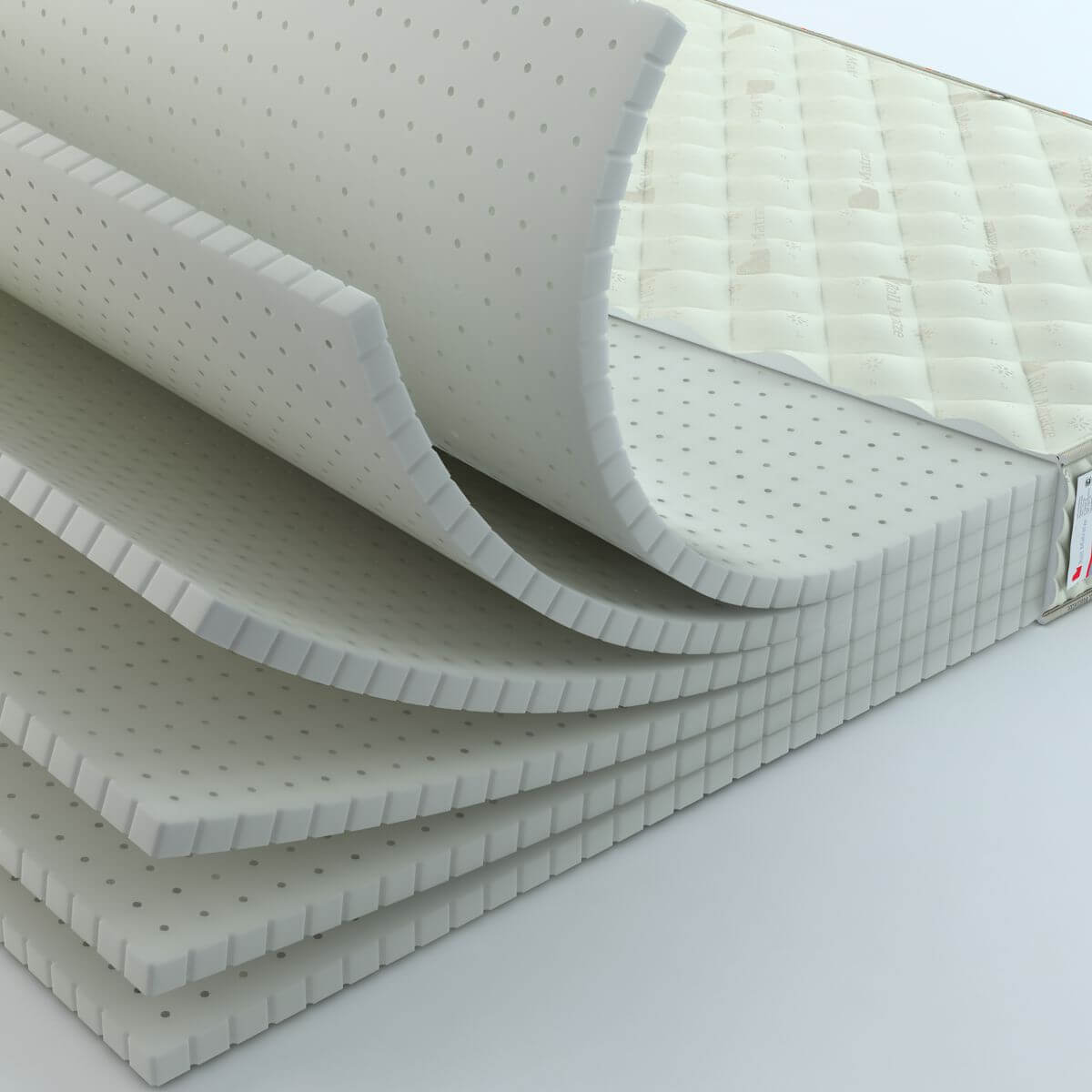 ОписаниеМатериал получают путём добычи сока каучукового дерева гевеи с последующим вспениванием и введением в массу специальных веществ для достижения нужных характеристик. Достоинства латекса Популярность латекса, используемого в качестве наполнителя для матрасов и подушек, объясняется рядом плюсов этого материала. Среди основных из них выделим следующие: Эластичность и упругость. Благодаря удачному сочетанию этих свойств материал обеспечивает правильное положение позвоночника человека во время сна, отлично принимает форму тела, гарантируя равномерное распределение нагрузки. При этом в дальнейшем матрас принимает первоначальный вид, поверхность становится ровной. Отличные терморегулирующие свойства. Пористая структура создаёт оптимальный уровень вентиляции, воздухообмена. Таким образом, даже летом отдых на таком матрасе будет комфортным. Оптимальная жёсткость. Производители латекса в рулонах на опт проводят перфорацию поверхности материала, за счёт чего плотность в различных зонах отличается, и покупатели могут выбрать подходящий вариант. Долговечность. Матрасы и другие постельные принадлежности, при изготовлении которых был использован рулонный латекс, имеют длительный эксплуатационный ресурс, служат без потери характеристик на протяжении десятков лет.