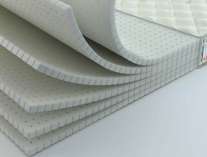Оптимальная жёсткость. Производители латекса в рулонах на опт проводят перфорацию поверхности материала, за счёт чего плотность в различных зонах отличается, и покупатели могут выбрать подходящий вариант.