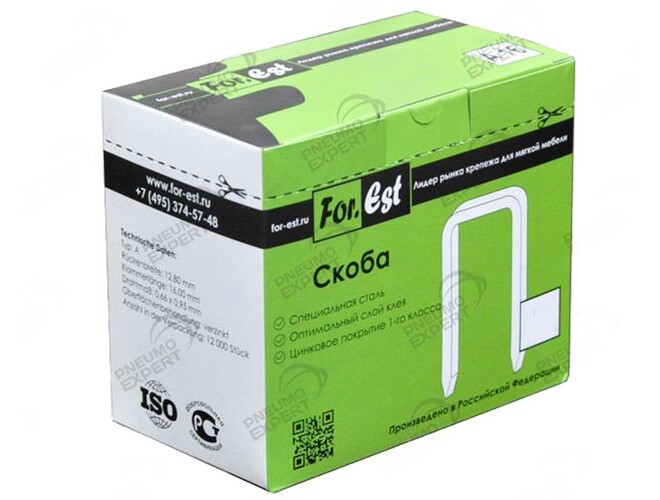 Среди плюсов этого типа комплектующих: цинковое покрытие 1-го класса, дает большой срок службы, а оптимальный слой клея сохраняет ресурс инструмента. Скобы имеют сертификат соответствия ISO9001, а значит гарантируют эталонное качество.